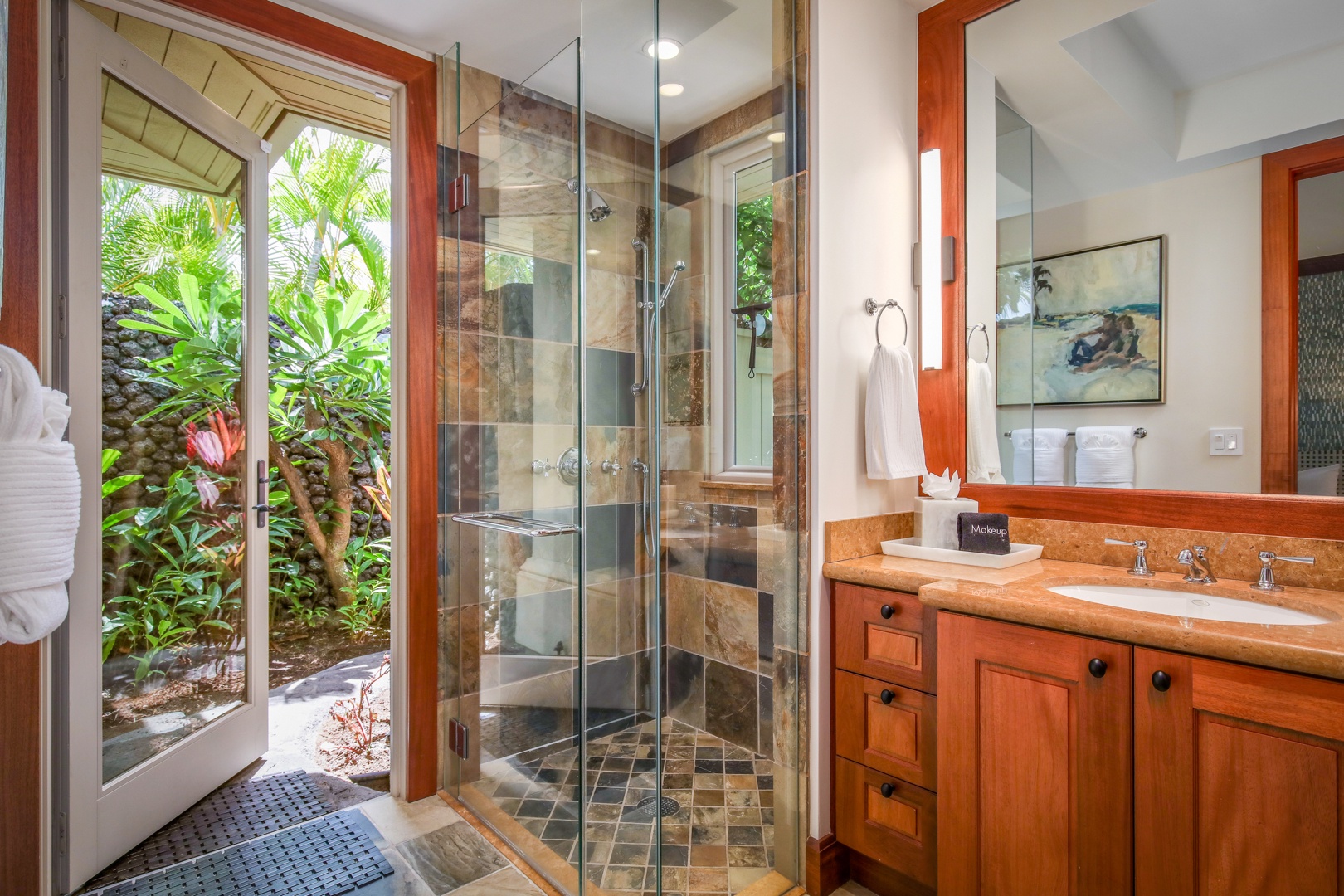 * Guest Bedroom 3 – King bed, ensuite bath with walk-in shower and outdoor shower garden