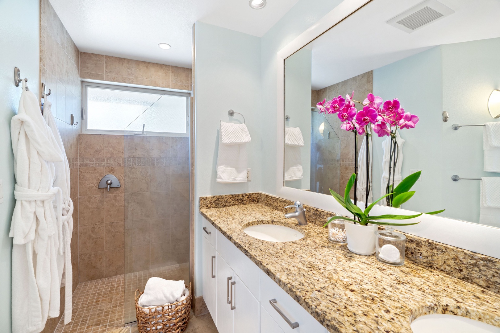 • Guest Suite (Lower Level) – King bed, ensuite bath with jetted tub, double vanity, and private lanai access